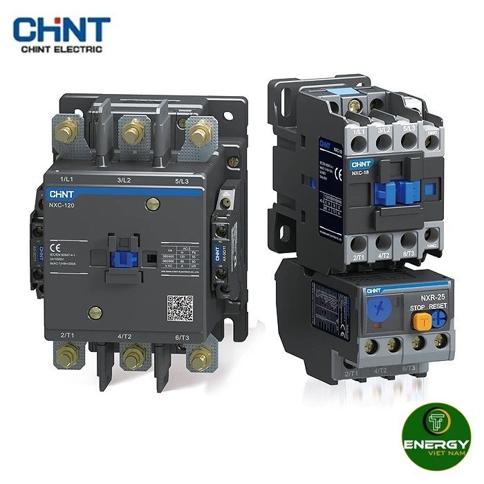 Công tắc tơ Chint (contactor hay khởi động từ) là thiết bị trung gian dùng để đóng – ngắt mạch điện. Được kích hoạt bằng điện thông qua nút nhấn (bằng tay) hoặc cảm biến đóng ngắt tự động kích hoạt.